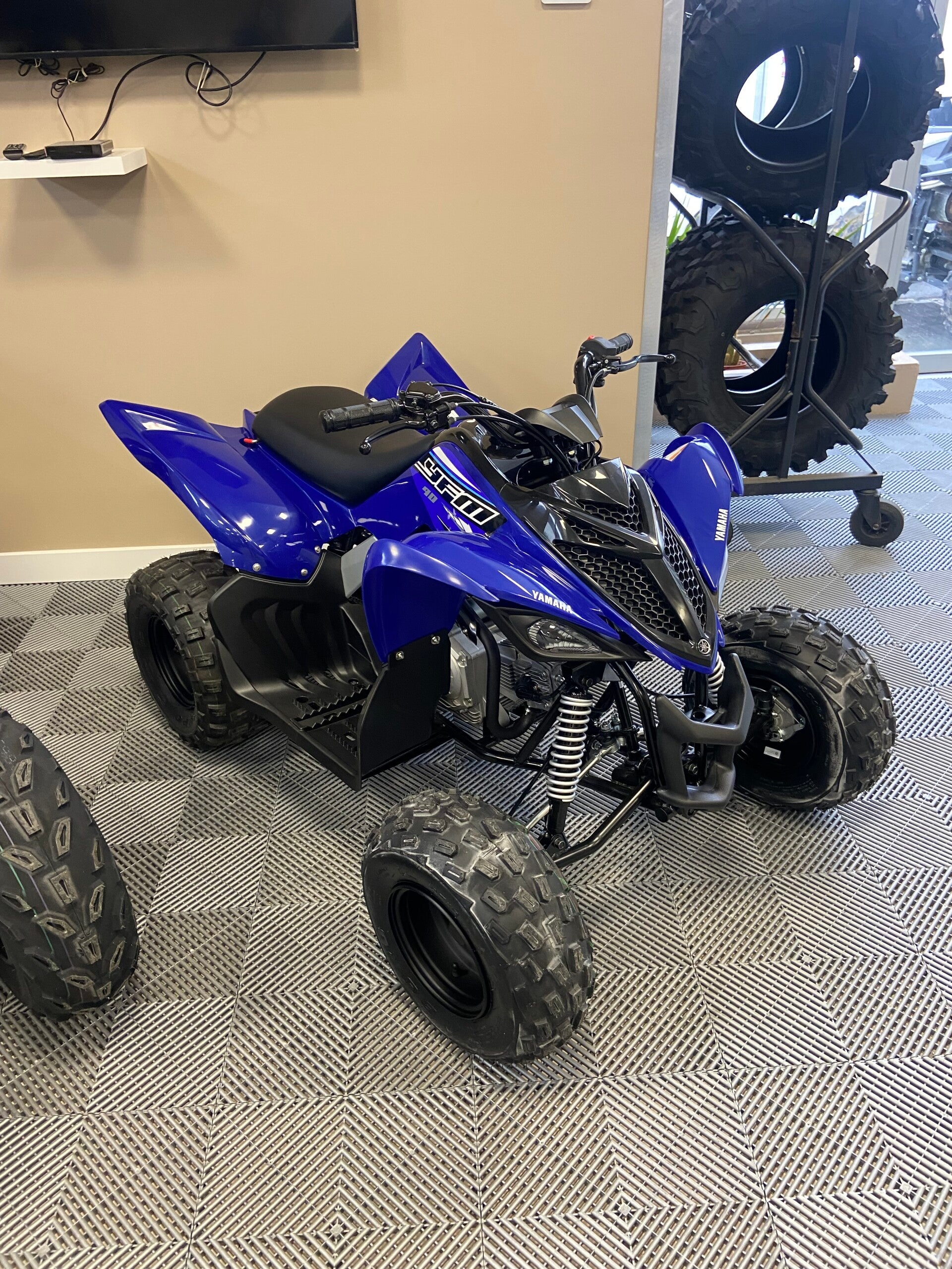 Le Yamaha YFM 90 est un quad compact et performant, idéal pour les jeunes pilotes de 10 ans et plus. Il est équipé d'un moteur monocylindre de 88 cm³ qui développe une puissance de 7,5 ch. Ce quad est équipé d'une transmission à variation continue (CVT) qui offre une conduite souple et confortable. Il est également équipé d'une suspension avant indépendante à double triangle, d'un frein de parking et d'un démarreur électrique.